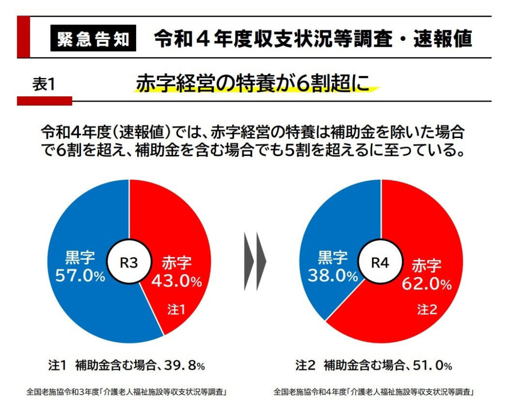 令和4年度全国老施協の集計結果によると、下記の社会福祉法人が赤字転落しております。